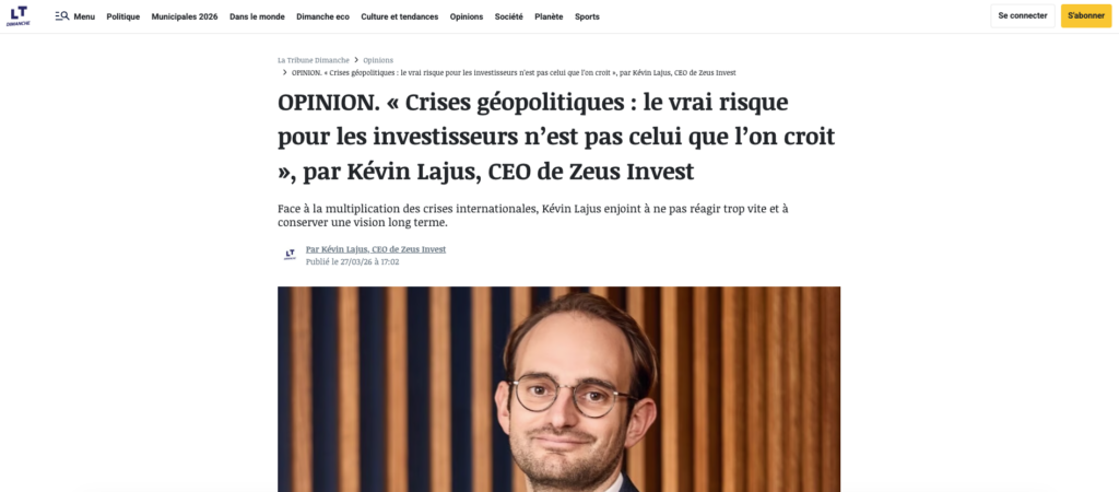 Retrouvez la tribune de Kevin Lajus sur l’investisseur face aux risques géopolitiques dans La Tribune.